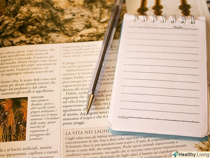 Візьміть приладдя. було б розумно робити нотатки при читанні. Текст довгий, залежно від книги, яку ви вибрали, тому Ви можете легко забути подробиці. Тримайте під рукою блокнот і ручку, щоб записувати важливі уривки, замітки, періоди, сімейні дерева, значущих людей, і будь-які виникаючі питання, щоб пізніше можна було досліджувати відповіді на них.- Візьміть Біблію! Вам потрібно буде взяти екземпляр або кілька, залежно від книг і перекладів, які ви вибрали для читання. Їх легко можна дістати або придбати в місцевих церквах, книжкових магазинах, християнських книжкових магазинах, або через Інтернет. Можна також використовувати безкоштовний переклад онлайн, Якщо вам не потрібен паперовий екземпляр. Якщо ви придбали керівництво до Біблії, то може бути, що керівництво вже містить частину тексту або весь текст, який вас цікавить. Дізнайтеся це, щоб бути впевненим, що ви не візьмете більше, ніж вам потрібно.