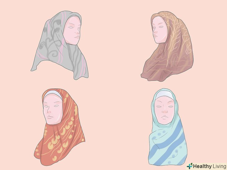 Вибираємо свій стиль. походіть по магазинах, в яких продається одяг для мусульман і подивіться на наявний вибір. Деякі хіджаби складаються з одного шматка тканини, який може бути квадратним, прямокутним або трикутним. Їх потрібно підганяти, закріплювати або зав'язувати. Інші виглядають як труба і продаються разом з шапочкою, яка надівається під цю трубу. Їх ще називають капрами, такі капри найбільше підходять для новачків, так як їх не потрібно закріплювати шпильками і підганяти. Підберіть хіджаб такого кольору, щоб він підходив під Ваш одяг або ж виберіть нейтральний колір. Немає нічого страшного, якщо колір вашого хіджабу буде виділятися. Вибирайте хіджаби з натуральних тканин, таких як бавовна або шовк, адже вони "дихають".