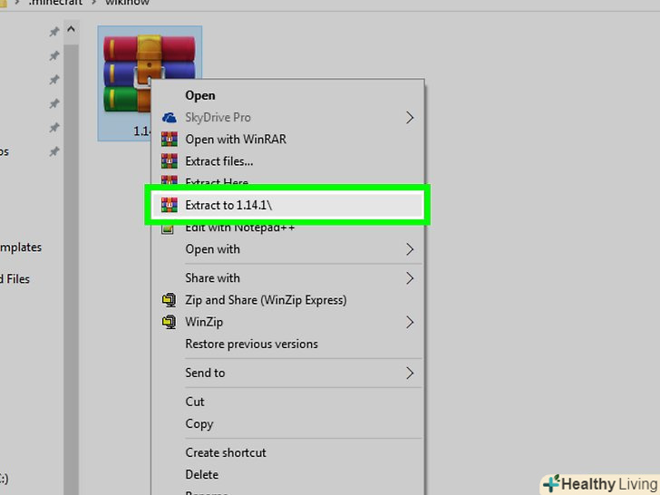 Розпакуйте файл JAR за допомогою WinRAR.клацніть правою кнопкою миші на файлі JAR, а потім в меню виберіть " витягти в [ім'я JAR-файлу]"»- Наприклад, якщо JAR-файл називається «1.13.1», натисніть «витягти в 1.13.1».