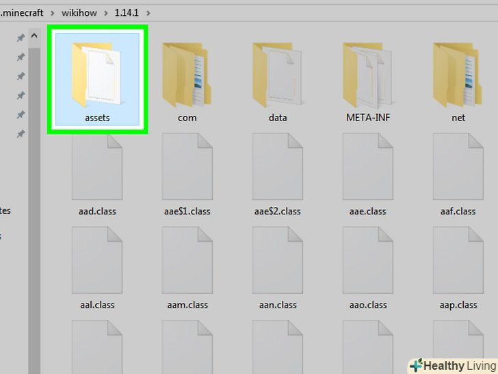 Знайти папку "assets". або прокрутіть папки та файли Minecraft (їх більше 4000), або введіть assets у рядку пошуку у верхній правій частині вікна.