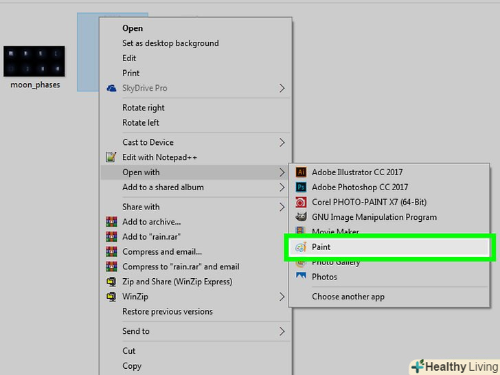 Відкрийте текстуру в Paint. знайдіть текстуру, яку хочете відредагувати, клацніть по ній правою кнопкою миші і в меню виберіть «Відкрити за допомогою» gt; «Paint».