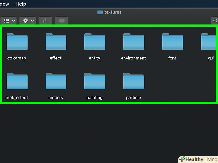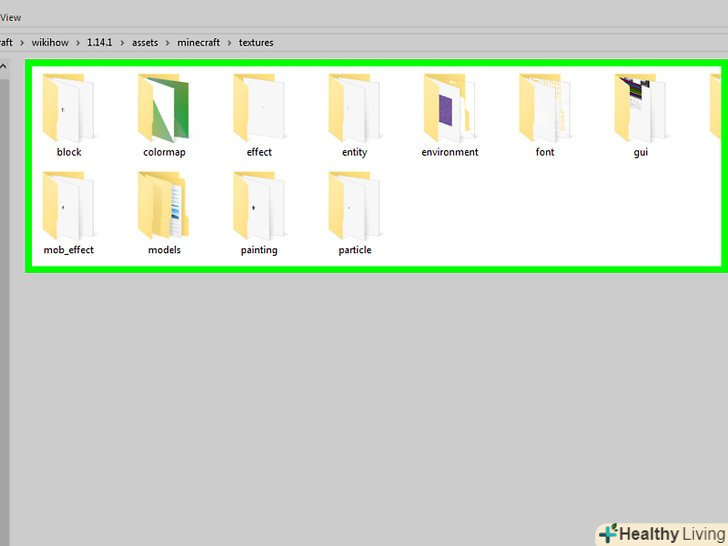 Знайдіть категорію текстури, яку хочете редагувати, і відкрийте її папку.наприклад, щоб відредагувати текстуру блоку, двічі клацніть по папці»blocks".