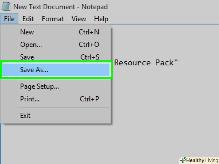 Збережіть текстовий файл з розширенням".mcmeta». для цього:- Натисніть "Файл".