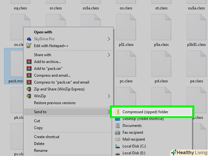 Створіть ресурс пак.відкрийте папку JAR, знайдіть файл з розширенням".mcmeta", клацніть по ньому правою кнопкою миші і в меню виберіть» Відправити "gt;»стиснута ZIP-папка".