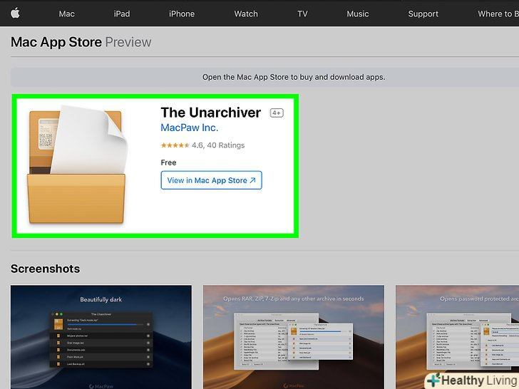 - Натисніть "Встановити «на сторінці програми»Unarchiver".