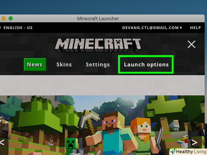 Клацніть поLaunch options (параметри запуску).ця опція знаходиться у верхній правій частині вікна лаунчер.