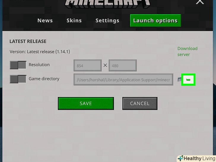 Відкрийте папку з грою Minecraft.для цього натисніть на зелену стрілку в правій частині поля "Game directory" (Папка з грою). Відкриється папка".minecraft", в якій зберігаються всі файли Minecraft.