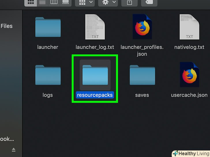 Поверніться в папку "Minecraft".двічі натисніть кнопку «Назад», яка виглядає як спрямована вліво стрілка і знаходиться в лівій верхній частині вікна Finder. Ви перейдете з створеної папки в папку "resourcepacks«, а звідти в папку»minecraft".