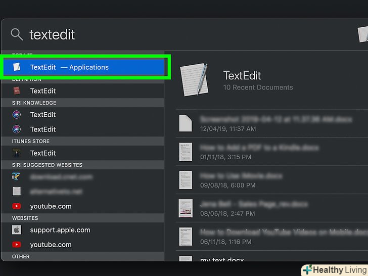 Запустіть TextEdit. Натисніть «Spotlight», введіть textedit і натисніть "TextEdit" під рядком пошуку. Відкриється вікно TextEdit.