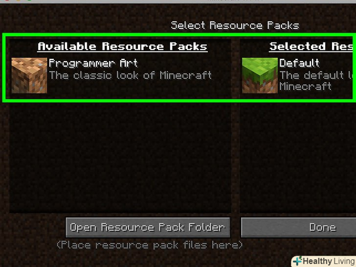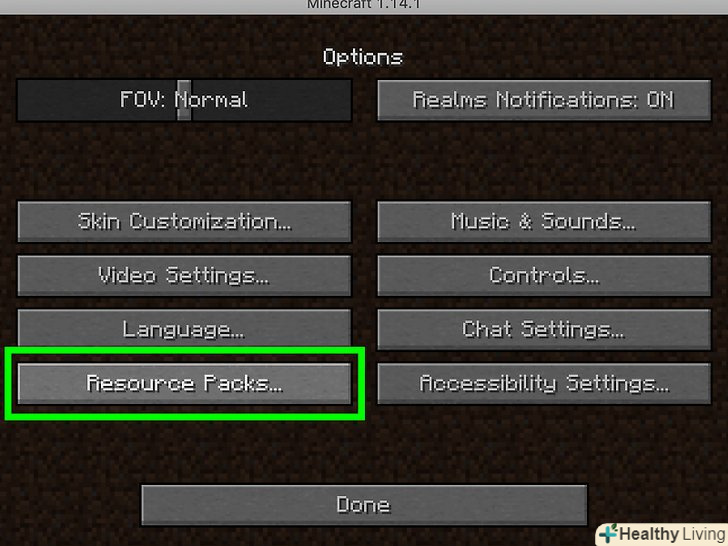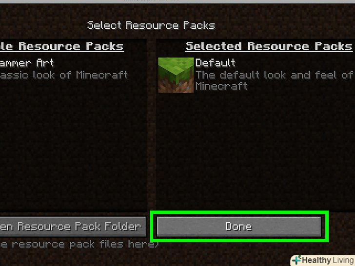 Клацніть поГотово.ця опція знаходиться внизу сторінки. Текстур пак буде активований-тепер завантажте ігровий світ, щоб протестувати оновлені текстури.