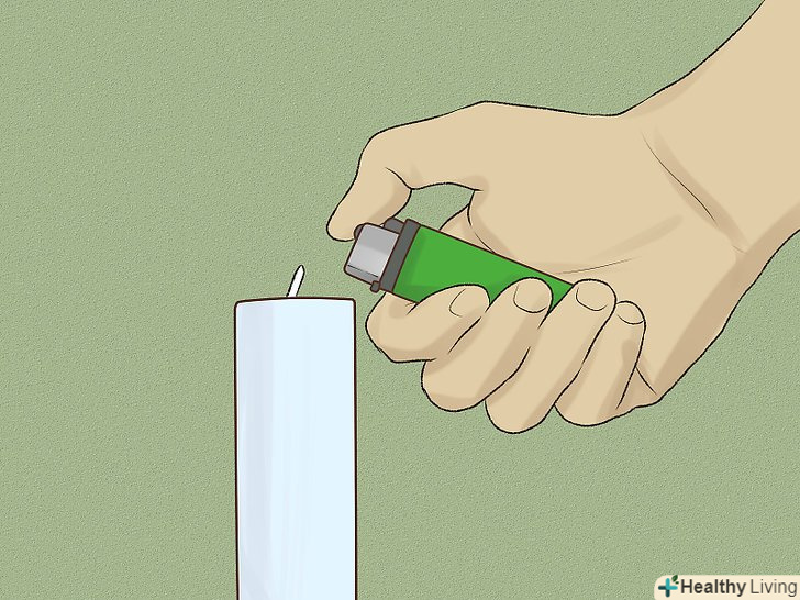 Запаліть свічку. свічки-чудовий спосіб сконцентрувати свою увагу на медитації, або роздумі. Якщо ви створили для свого ангела-хранителя вівтар, можна запалити свічку на вівтарі. Якщо у вас немає окремого вівтаря, можна просто запалити свічку і поставити її перед собою на стіл.- Якщо ви не хочете запалювати свічку, можна використовувати чотки або слухати повторювані звуки природи, наприклад, шум прибою або дощу. Це теж допомагає сконцентруватися. [9]