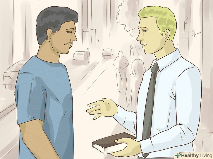 Поговоріть з християнським місіонером. Якщо ви живете в місцевості, де працюють християнські місіонери, відвідайте одне з їхніх зборів або запросіть місіонерів до себе додому. Ви можете обговорити з ними особливості їх християнської віри, наприклад, розуміння того, що означає порятунок і гріх. Також ви можете запитати, як у їхній громаді ставляться до новонавернених. Місіонери приходять з різних християнських деномінацій, тому вам доведеться поговорити з різними людьми, перш ніж ви вирішите звернутися. [3]- Наприклад, ви можете запитати: "як ти став християнином?"або" як ти зрозумів, що саме ця християнська деномінація тобі підходить?"