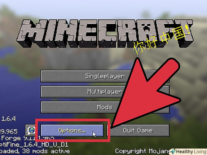 Запустіть Minecraft.- На домашньому екрані, клікніть на кнопку " Options.