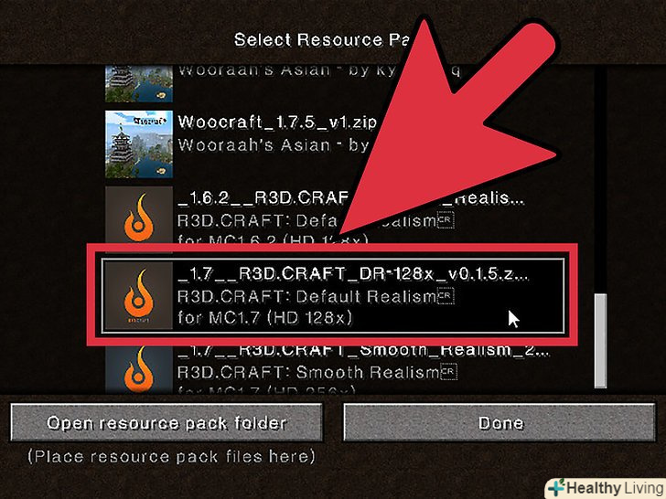 Завантажте пак.після того, як пак буде конвертований, ви зможете завантажити його в Minecraft, таким же чином, як і будь-який інший ресурс пак. Перегляньте попередні секції цієї статті для більш детальної інформації.