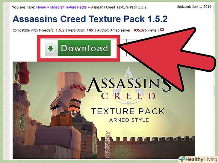 Знайдіть і скачайте ресурс пак.Ресурс паки можуть змінювати графіку, звуки, музику, анімацію та інше. Вони можуть бути знайдені на декількох популярних веб - сайтах про Minecraft-Е. Ресурс паки повинні бути безкоштовними. [1]- Коли ви завантажите ресурс пак, то він буде знаходиться в форматі ZIP. Не виймайте файли з архіву.