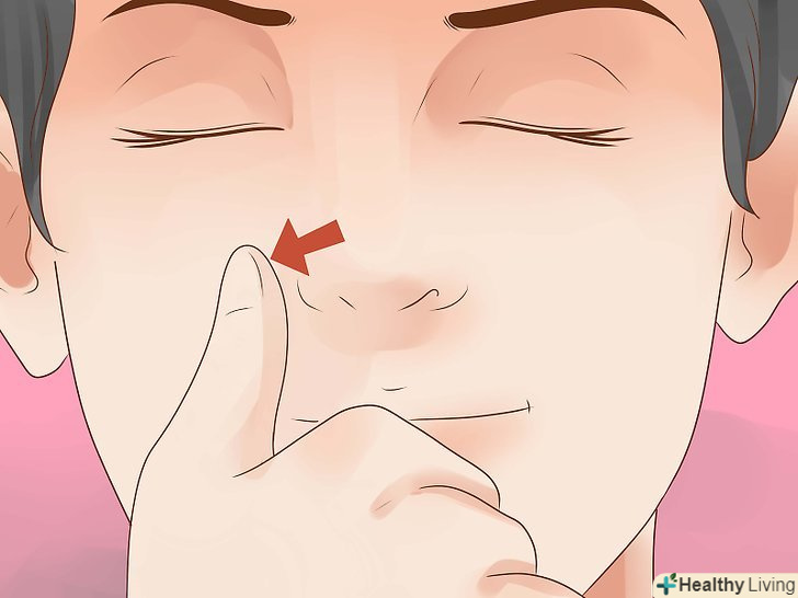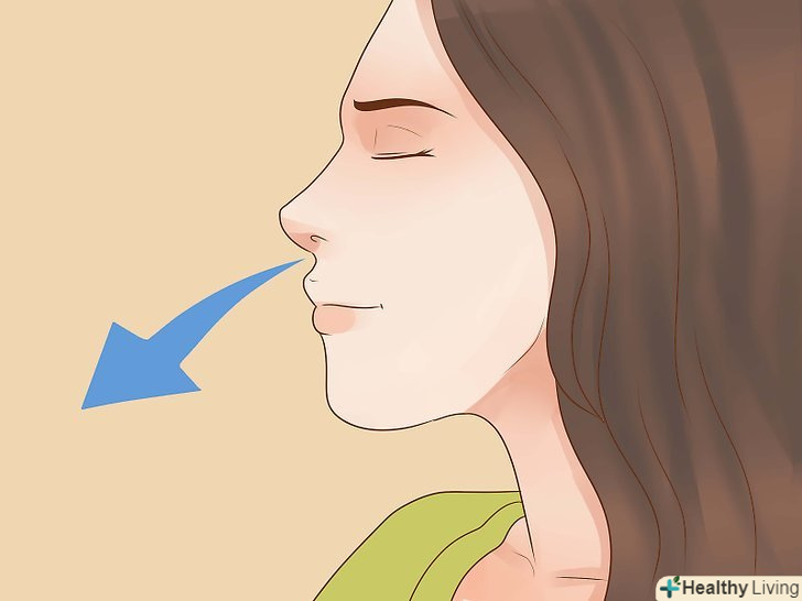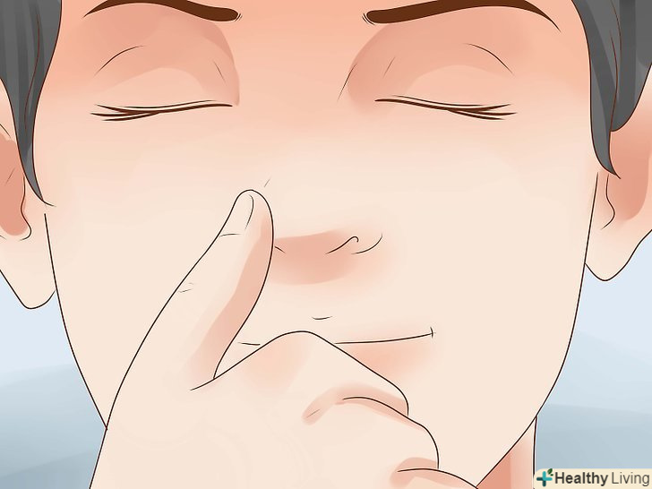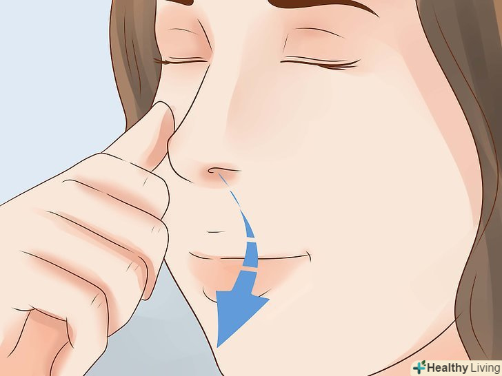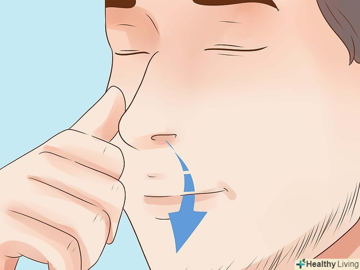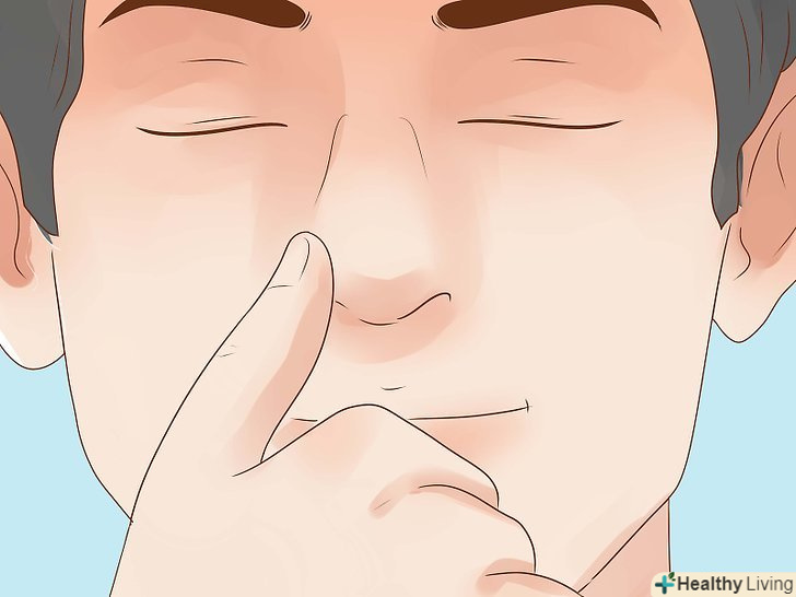 Закрийте праву ніздрю великим пальцем правої руки. Просто притисніть пальцем ніздрю, щоб заблокувати її.