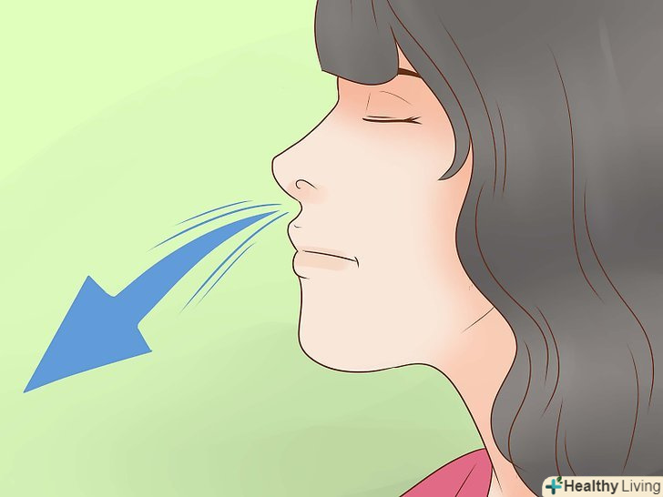 Сильно видихніть через обидві ніздрі. це акцентує дихання на видиху, а не на (природному) вдиху. Допомагайте видиху, підтягуючи м'язи живота, щоб випустити повітря. Видих повинен зайняти набагато менше часу, ніж зайняв вдих.- "примусовий" видих означає, що скорочення м'язів живота допомагає виштовхувати повітря з вашого тіла. ЦеНе означає, що видих повинен бути будь-яким чином некомфортним для вас.