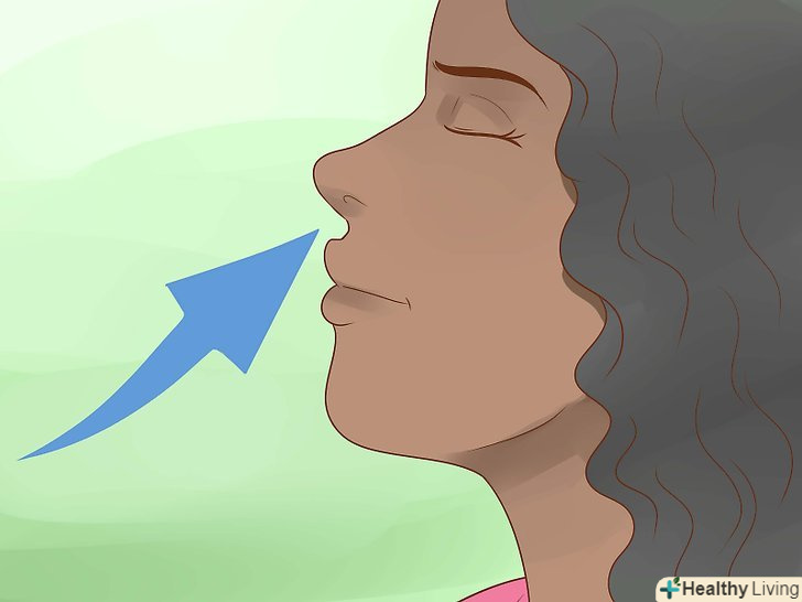Глибоко вдихніть через ніс. спочатку відчуйте, як опускається діафрагма, дозволяючи легким розширитися, а животу роздутися, потім відчуйте, як розширюється грудна клітка і, в останню чергу, піднімаються ключиці.