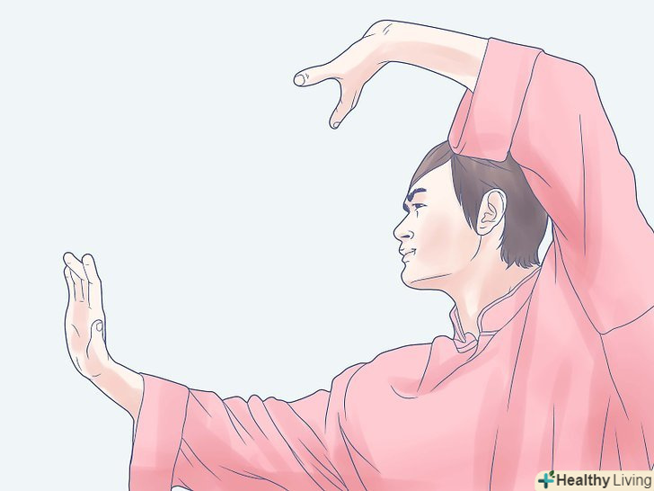 Виберіть той стиль тайцзи, який відповідає вашим потребам і інтересам. існують сотні стилів, але кожен з них має свою специфіку, наприклад, призначений для зміцнення здоров'я або є бойовим мистецтвом. [1] так що визначитеся, якого результату ви очікуєте від занять тайцзи. Є шість найпопулярніших стилів, які беруть початок від родів-засновників: Чень, Ян, У, Сунь, У-Хао і Фа. Стиль Ян-найвідоміший напрямок, що займаються зміцненням здоров'я , а стиль Чень, з його більш низькими позиціями і акцентом на бойових рухах, найбільш популярний як спосіб самозахисту. Незважаючи на те, який ви виберете стиль, старанно займайтеся і пам'ятайте, що, незважаючи на зовнішні відмінності, всі напрямки тайцзи засновані на одній філософії.- Велика кількість стилів тайцзи свідчать про те, що ви можете вивчити більше 100 рухів. [1] багато з них мають назви тварин і явищ природи.
