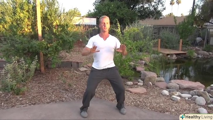 - Дихайте правильно. Один із секретів корисності тайцзи-це глибоке черевне дихання. У більшості стилів вчать черевного дихання, при якому потрібно робити вдих, розширюючи діафрагму (не грудну клітку), і видихати, скорочуючи черевні м'язи. Вдихати потрібно тільки носом, видихати – ротом, при цьому мова повинна стосуватися неба, стимулюючи виділення слини.