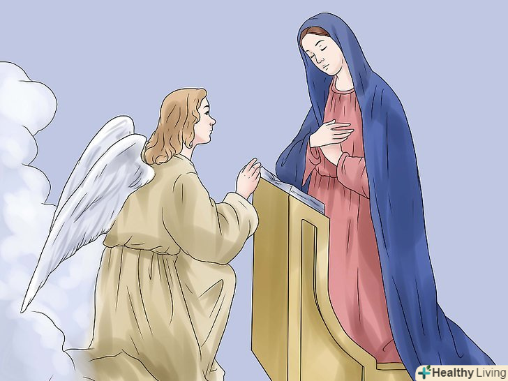 Перша таємниця: наш Господь Ісус зачатий силою Святого Духа в утробі Пресвятої Діви Марії.
