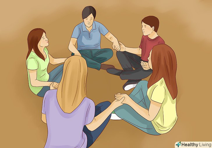 Знайдіть час, щоб повернутися, і заземлите себе знову. Ви також можете зробити це, випивши або з'ївши щось, обійнявши один одного, поплескавши себе по всьому тілу або представивши коріння, що вростають в землю, які не дадуть вам впасти.- Як одиночна, так і групова практика стає тільки краще від обміну вином і пирогом для заземлення і благословення на цьому етапі. Передавайте вино і потім пиріг або хліб за годинниковою стрілкою, отримавши благословення і благословивши наступного за вами людини. Коли всі відчують заспокоєння, відмінною ідеєю будуть обговорення і експресія.