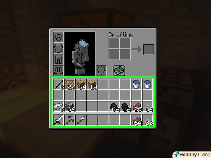 Наведіть порядок в інвентарі.Шахтарська справа в Minecraft - це втілення принципу "пан або пропав", адже ви або повернетеся з купою видобутку, або... помрете. Готовим слід бути до всього, так що все цінне з інвентарю приберіть заздалегідь — заодно і місце для видобутку звільниться. В першу свою підземну експедицію потрібно буде взяти, крім кирки, наступне (і не бійтеся, це буде швидкий забіг):- Їжа;