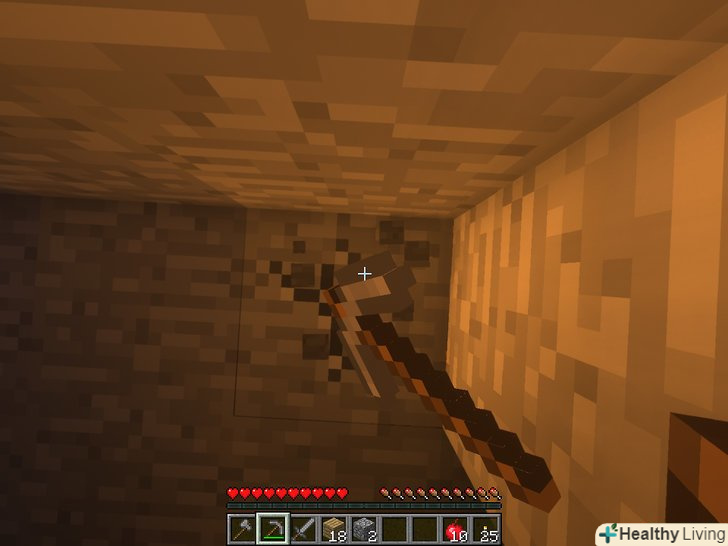 Навчіться правильно копати шахти.Правильно — значить "безпечно". Чи не кожен гравець вмирав через невірні рішення, прийнятих під час роботи киркою, причому навіть тоді, коли і ворогів-то поруч не було. А смерті можна уникнути, якщо не забувати про наступні правила безпеки:[1]- Не копайте прямо під собою, щоб не впасти.