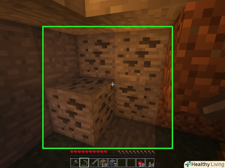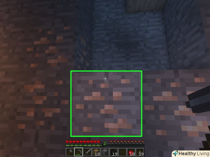 Добудьте залізо.Блоки з залізом, як і будь — яка інша руда, схожі на кам'яні блоки, покриті плямами-на цей раз жовтуватими або коричневими. Залізо знайти нескладно, воно з'являється вже на глибині в кілька блоків нижче рівня моря.- Не копайте залізо дерев'яною киркою-і кирку поламаєте, і залізо не добудете. Використовуйте кам'яну, залізну або алмазну кирку.