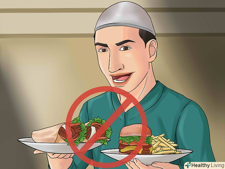 Поступово поверніться до нормального раціону харчування. ви постили протягом цілого місяця, і, швидше за все, ваш організм відвик від об'ємних порцій. Почніть помірно в тому, що стосується жирної або смаженої їжі, солі і цукру. Можливо, ваш шлунок стягнувся під час посту, і вам навряд чи хочеться отримати здуття. Якщо ви з'їсте занадто багато, розціните це як урок, щоб зменшити обороти в наступний раз.- Подумайте, чи варто відновлювати звичку переїдати. Якщо у вас вийшло культивувати здоровий спосіб життя під час Рамадану, постарайтеся дотримуватися його.