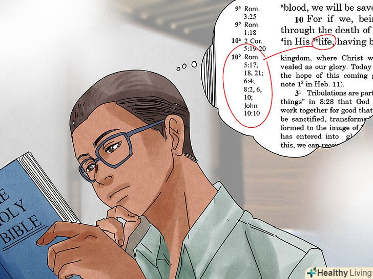 Читайте перехресні посилання та виноски, якщо вони є у вашій Біблії. вони вказують на інші місця, які говорять про те ж саме. Це як би пошук по всій Біблії за ключовими словами. Виноски ж дають пояснення або містять різні інтерпретації даного поняття або вірша, посилаються на певні події в історії або на відомі історичні постаті.- Спробуйте почитати перехресні посилання по деяких місцях, які кинулися вам в очі або були не зовсім зрозумілі.