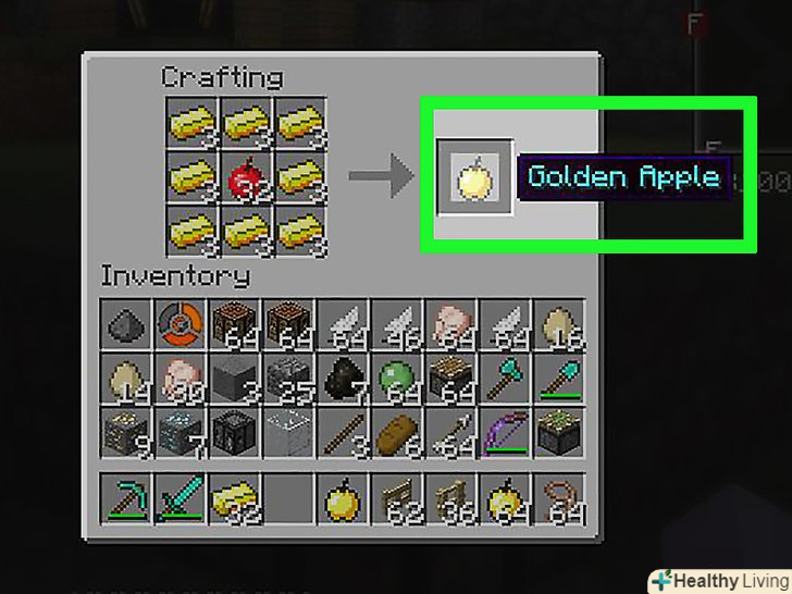 Візьміть золоте яблуко руку.для цього виділіть золоті яблука в осередку на панелі швидкого доступу внизу екрану.