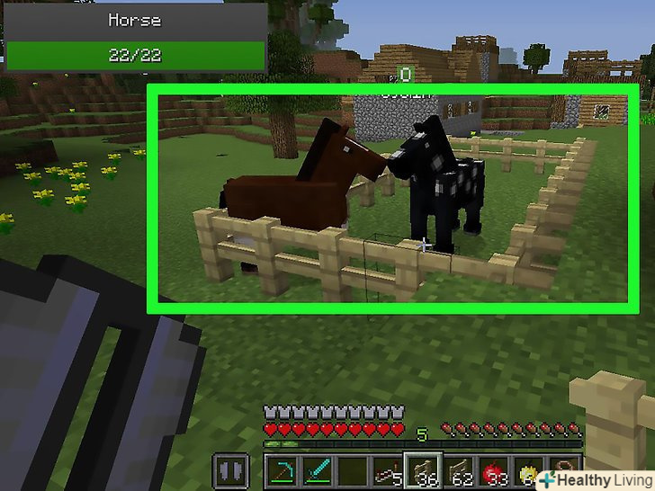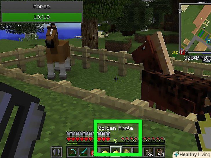 Переконайтеся, що обидва коні мають повне здоров'я.в іншому випадку золоте яблуко просто відновить здоров'я коня, а не підготує її до спаровування.- Щоб відновити здоров'я коней, годуйте їх червоними яблуками, поки вони не перестануть їсти.