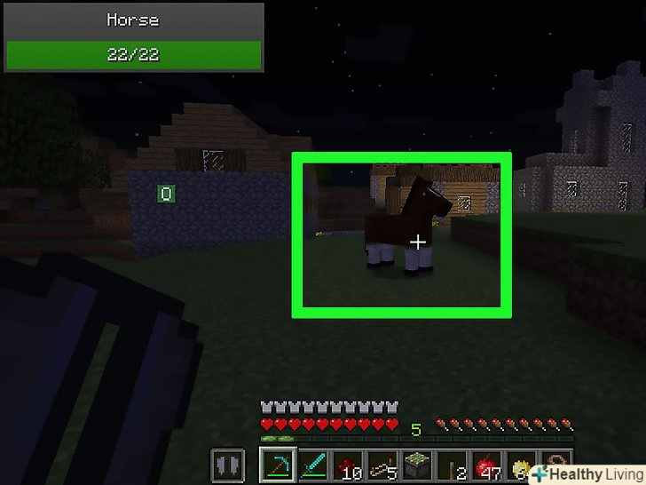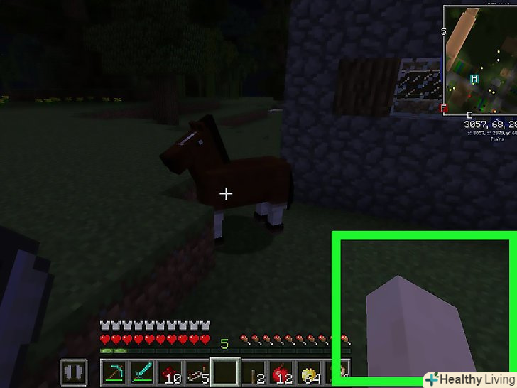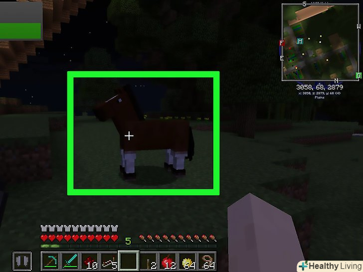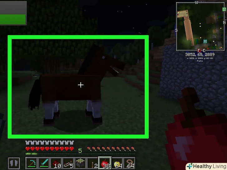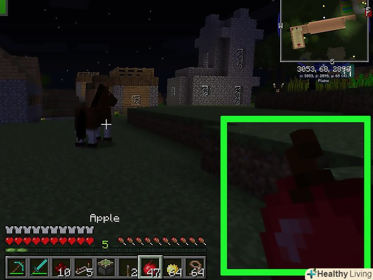 Візьміть яблуко в руку.для цього виділіть яблука в комірці на панелі швидкого доступу внизу екрана. Зробіть це перед тим, як підійти до коня.