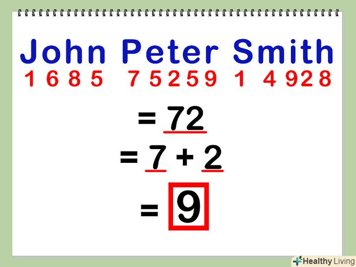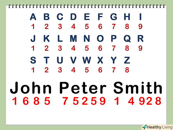 Складіть всі числа букв вашого імені. складіть цифри отриманого числа разом. Вийде 1 цифра. (Наприклад: 112: 1+1+2 = 4.)- Є винятки: цифри 11, 22, 33 і 44 це особливі числа.
