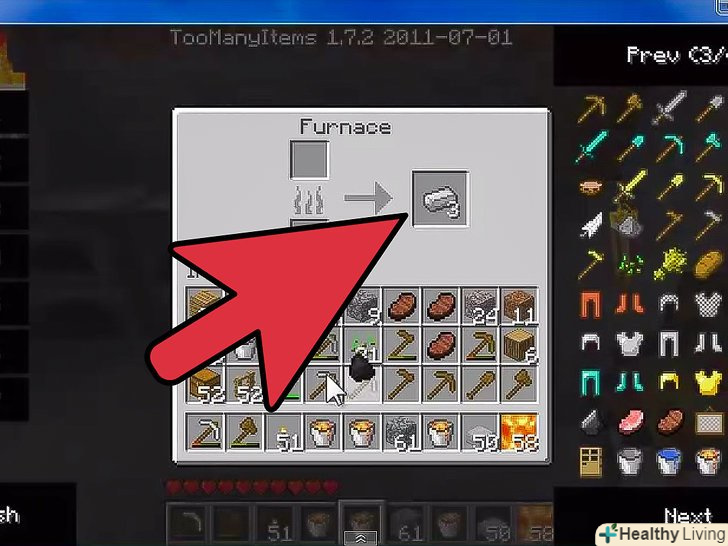 Дістаньте 8 блоків кругляка, зробіть піч.поставте її на землю.