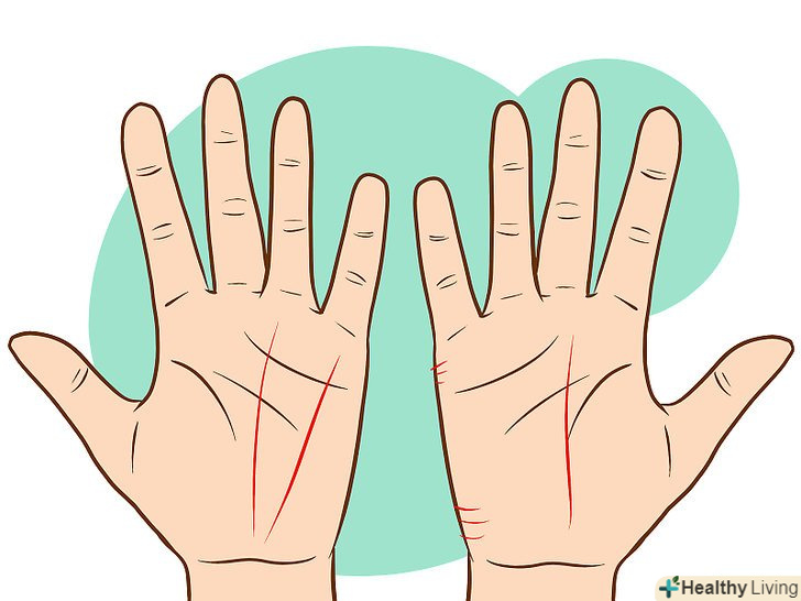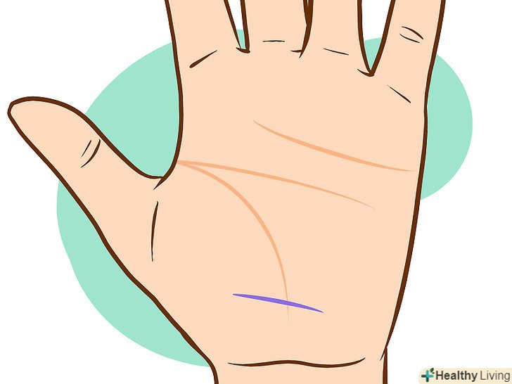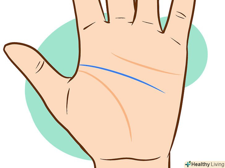 Вивчіть лінію здоров'я. ця лінія визначає стан здоров'я і матеріальний добробут. Зазвичай вона присутня тоді, коли лінія життя не зовсім чітка і помітна. Якщо у людини слабка лінія долі або успіху, лінія здоров'я відіграє велику роль у визначенні матеріального стану. Лінія здоров'я проходить від основи мізинця по долоні до великого пальця. Іноді вона може з'єднуватися з лінією життя. Інтерпретують її так: [13]- Якщо лінії Немає, У людина буде мало проблем зі здоров'ям або зовсім не буде їх. Сильна і безперервна лінія вказує на вміння займатися бізнесом і волю до наполегливої праці і заробляння грошей.