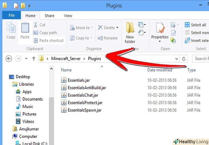 Встановіть плагін.Розпакуйте файл, який ви завантажите. Файл .zip, повинні мати в собі .jar файли, які, в свою чергу, мають всі дані плагіна. Скопіюйте кожен .jar файл з .zip файлу в директорію плагінів, в папці вашого сервера.- Перезапустіть сервер, щоб встановити всі плагіни. Вам може знадобитися змінити налаштування сервера знову, після того, як ви встановите новий плагін.