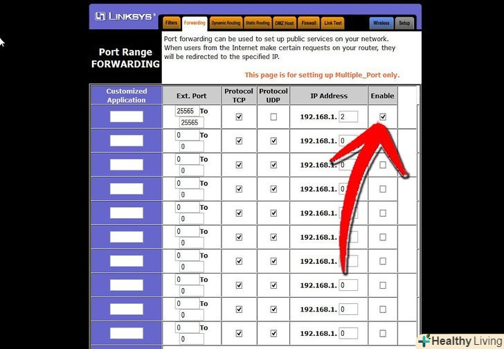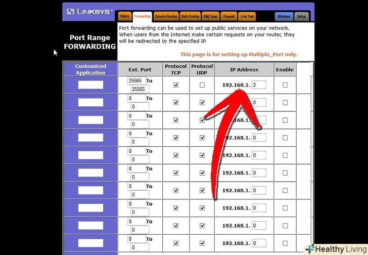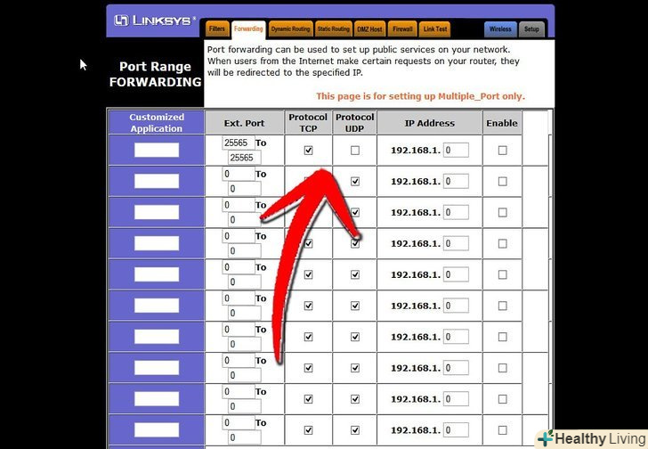 Зайдіть в меню»Port Forwarding".як прищепило, воно знаходиться під»Advanced Options". У нього може бути інша назва на кшталт» Virtual Servers", в залежності від виробника.