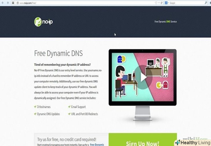 Налаштуйте динамічний DNS.динамічний DNS прив'яже ім'я домену до Вашого динамічного IP. Таким чином, у вас буде постійна адреса, до якого ви зможете з'єднуватися. Багато сервісів пропонують безкоштовні акаунти для однієї адреси.- Динамічний DNS вимагає мати програму на комп'ютері, яка буде оновлювати ваш домен, кожен раз, як ваш IP адреса буде змінюватися.