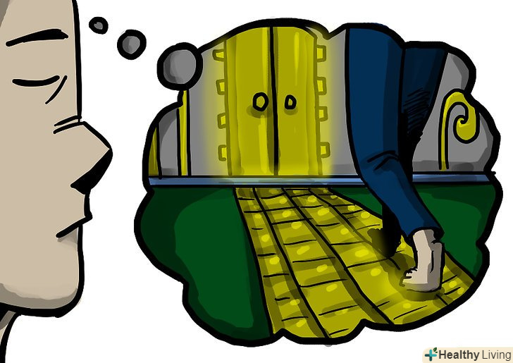 Поверніться в сьогодення. якщо тільки раптом ви не натрапите на неприємний спогад, вам доведеться закінчити сеанс, так як у вас просто закінчаться сили. Зображення перестануть з'являтися, або ж ви просто відвернетеся на щось інше. Тоді вам доведеться відкрити очі.- Якщо цього не станеться, але ви хочете повернутися до теперішнього часу, просто уявіть собі, як вийти в ті самі двері у великому залі. Закрийте за собою двері і пройдіть по залу в те місце, звідки ви почали свою подорож. Скажіть собі, що, як тільки ви дійдете до цього місця, ви повернетеся в сьогодення і відкриєте очі, і будете пам'ятати все, що змогли побачити зі свого минулого життя.