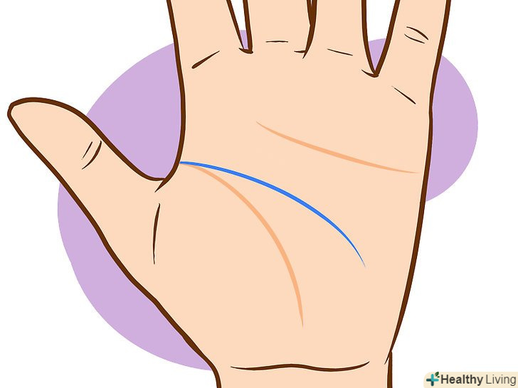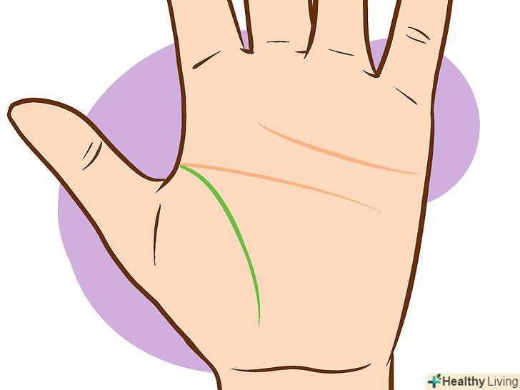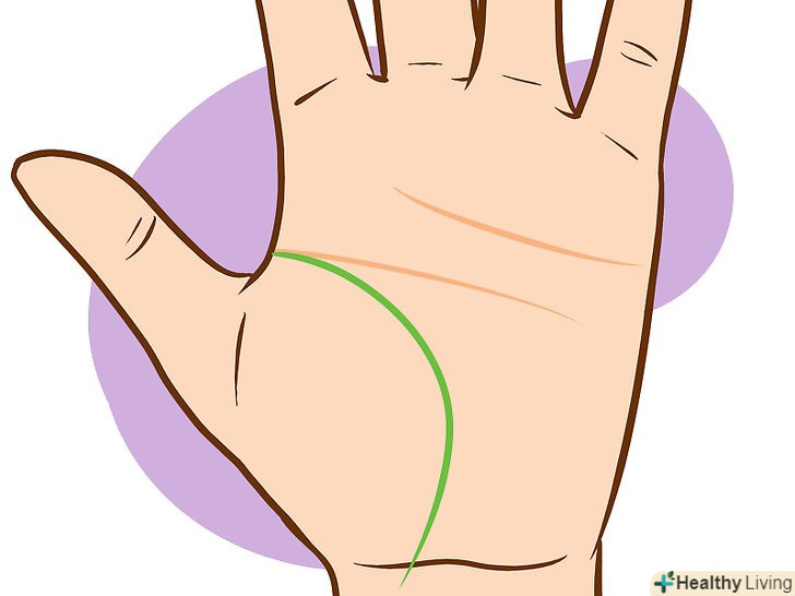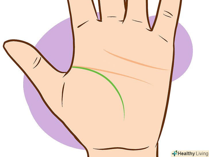 Знайдіть основні лінії. вони можуть бути короткими або переривчастими, але на будь-якій долоні можна знайти мінімум три з них.- (1) лінія серця.