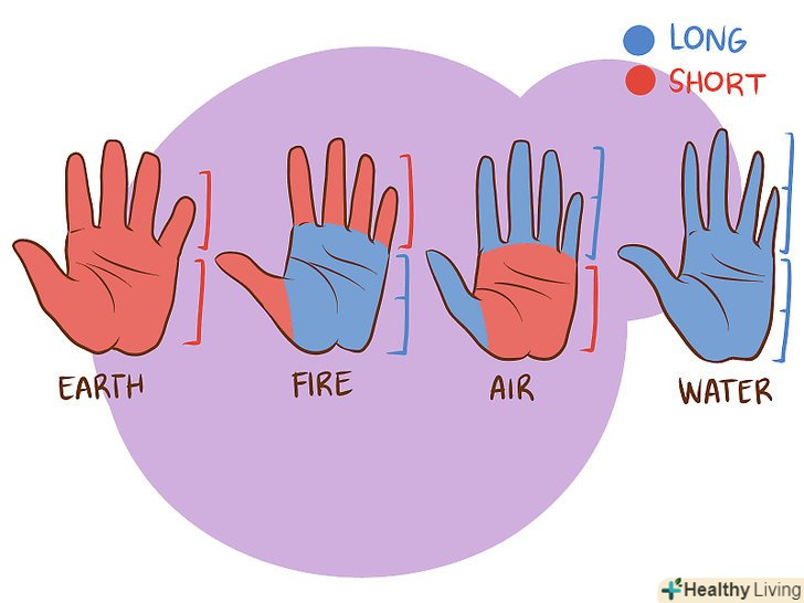 Форма руки. певні риси характеру можна дізнатися за формою руки. Довжина долоні вимірюється від зап'ястя до нижньої частини пальців. Основні інтерпретації:- Земля