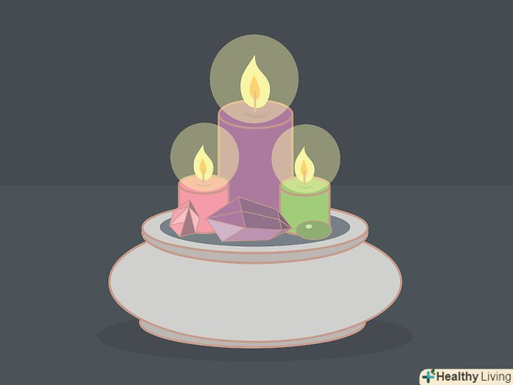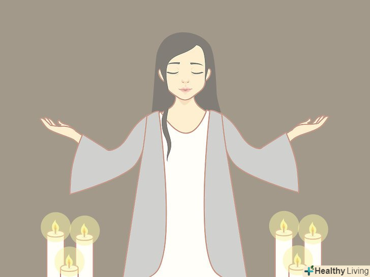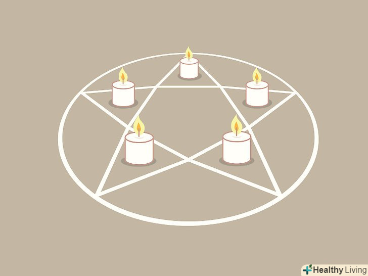 Зробіть коло або поставте вівтар. Вам потрібен освячений простір для виконання ритуалу. Це може бути як коло, яке захистить вас від втручання негативних духів і енергії, вівтар потрібен для того, щоб сфокусуватися на певне божество або елемент, АБО і на те і на інше разом. Ви будете виконувати ритуал, стоячи в колі або навпроти вівтаря.- Намалюйте досить велике коло, щоб там сісти, або п'ятикутні зірки в колі (так званий пентакль). Ви можете насправді намалювати коло або просто вести в повітрі пальцем або паличкою. Уявіть, як роблячи це, захисна енергія виходить з вашої руки і оточує кільце світлом. Ви можете висвітлити коло за допомогою свічок або позначити його камінням або деякими іншими значущими предметами. [1]