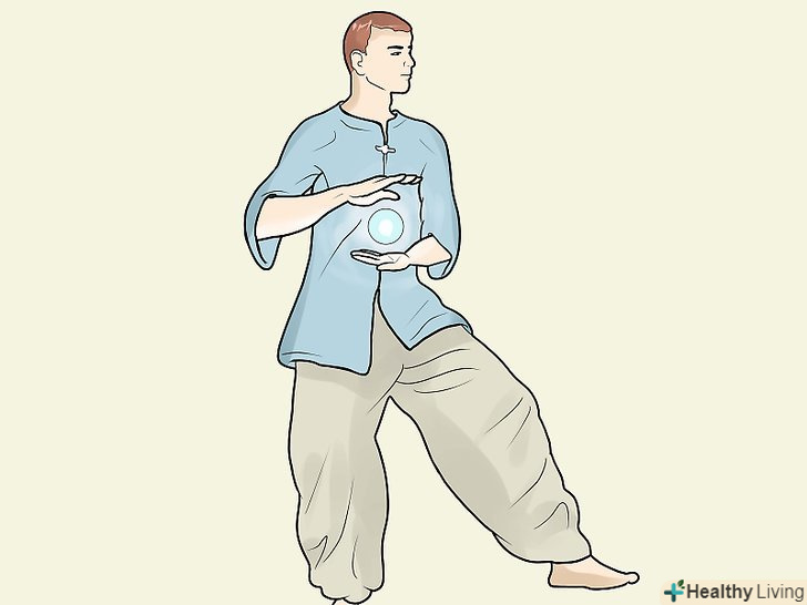 Зберіть енергію. вона може бути як з власного тіла, так і з іншого джерела. Ви можете візуалізувати енергію, що надходить і наповнює кожну частину вашого тіла від землі через ваші ноги або з неба і сонця через вашу коронну чакру. Деякі люди вважають, що енергія надходить в наш організм на вдих і виходить через руки на видих.