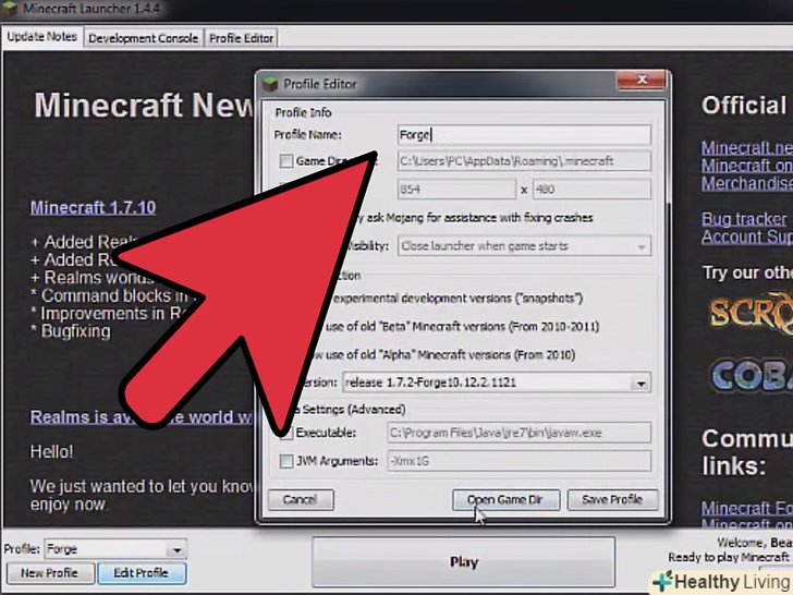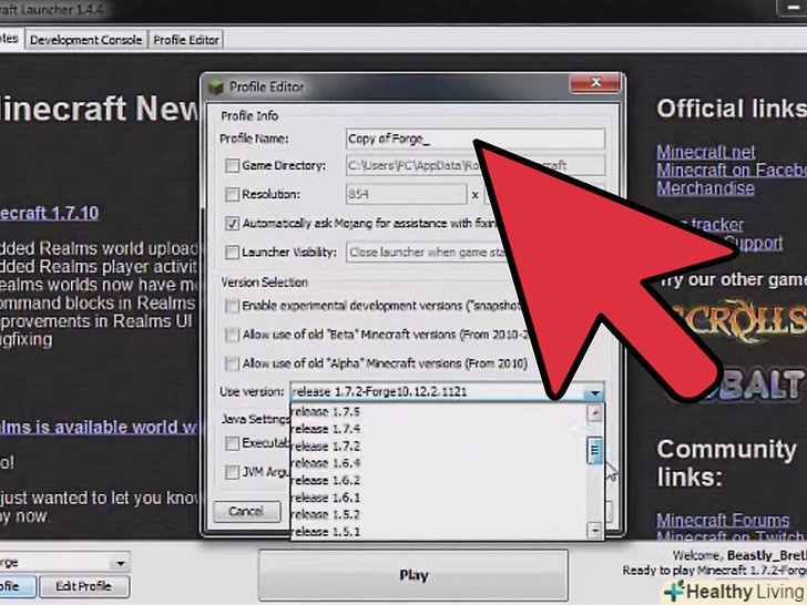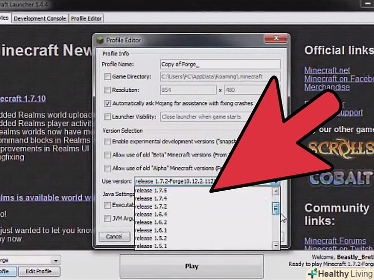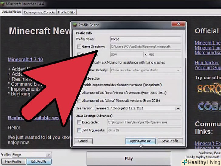 Запустіть Minecraft. натисніть на Edit Profile (змінити профіль). Виберіть Use version, а потім Forge.