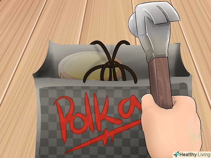 Розбийте посудину. щоб зробити це безпечно, покладіть банку в паперовий пакет, щільно загорніть, а потім акуратно розбийте її молотком.- Якщо ви наповнювали банку рідиною, то перш ніж розбити її, загорніть банку в паперовий, а потім в поліетиленовий пакет.