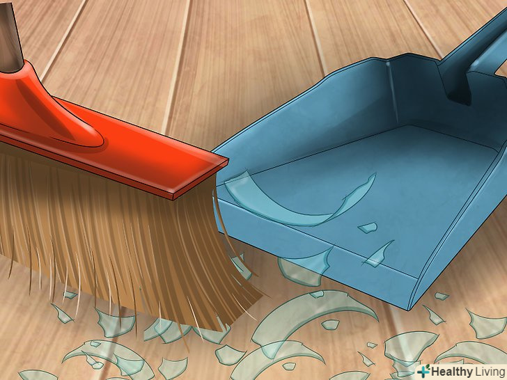 Викиньте осколки. Осколки розбитої банки покладіть в паперовий пакет і в щільний пластиковий мішок, а тільки потім викиньте їх у відро для сміття. Обов'язково приберіть розлиту рідину і осколки скла, якщо вони випали з пакета після того, як ви розбили банку.