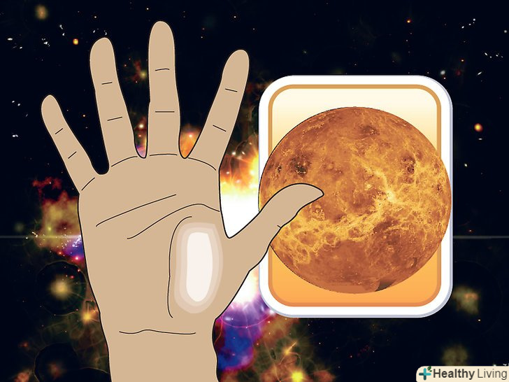 Визначте центральну верхівку кожного пагорба там, де починаються пальці. верхівка-це трикутник з виступів шкіри, який нагадує відбиток пальця.- Якщо верхівка знаходиться прямо під серединою пальця, це означає, що вона на долоні найважливіша.
