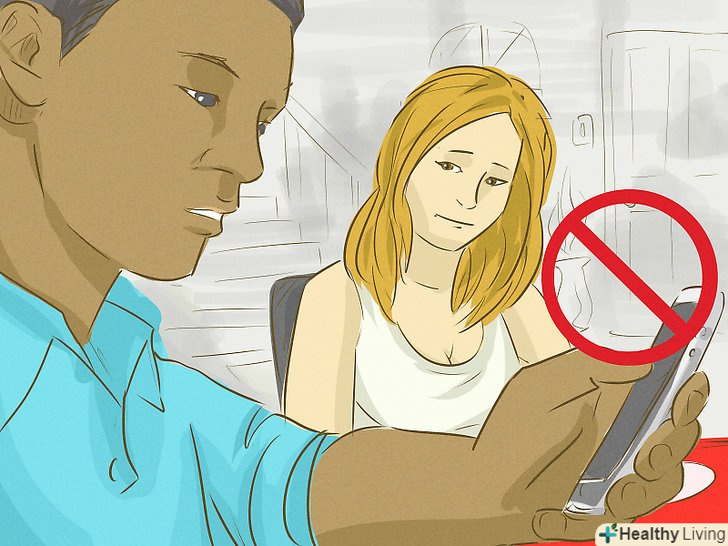 Приділяйте людям безроздільну увагу, коли проводите з ними час. заведіть звичку не перевіряти свій телефон або повідомлення, поки ви перебуваєте з друзями, родичами або партнером. Присвячуйте цей час оточуючим вас людям і слухайте, що вони говорять. Це дозволить зберегти міцні відносини і допоможе вам налагодити зв'язок з іншими людьми. [15]- При спілкуванні з друзями, виділяйте час для контакту один на один. Наприклад, якщо ви зібралися подивитися фільм, можна виділити 15 хвилин на розмову, перш ніж включати екран.